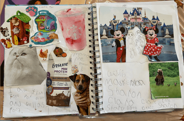 I truly get in the zone when working in a collage. I love that we can find similarities between our collages when it comes to traveling as a family and the love for our pets.